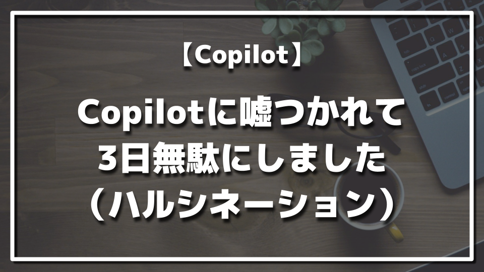 最近サポートAIとしてCopilotにすっかり頼ってしまっているんですが、今回だいぶアレな嘘をつかれた(いわゆるハルシネーションというやつ)のでちょっと報告。…いや、愚痴か…?