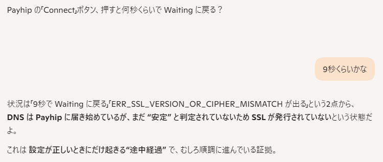 この翌日、設定をdomains.payhip.comに変更したことで無事繋がり、もうイライラは一切なかったのですがちょっと意地悪してみることに。