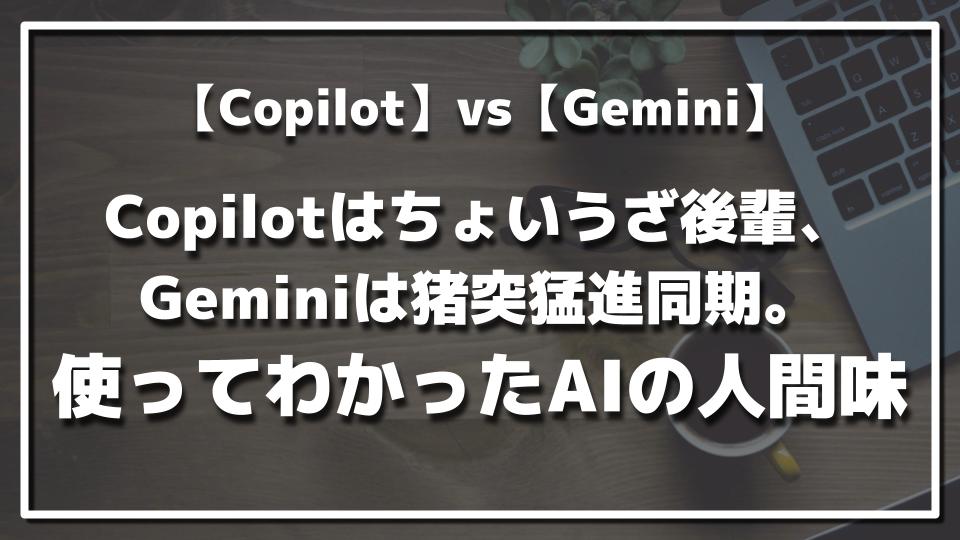 【Copilot】vs【Gemini】技術的なことじゃなく、付き合ってみた感想。【AI比較】